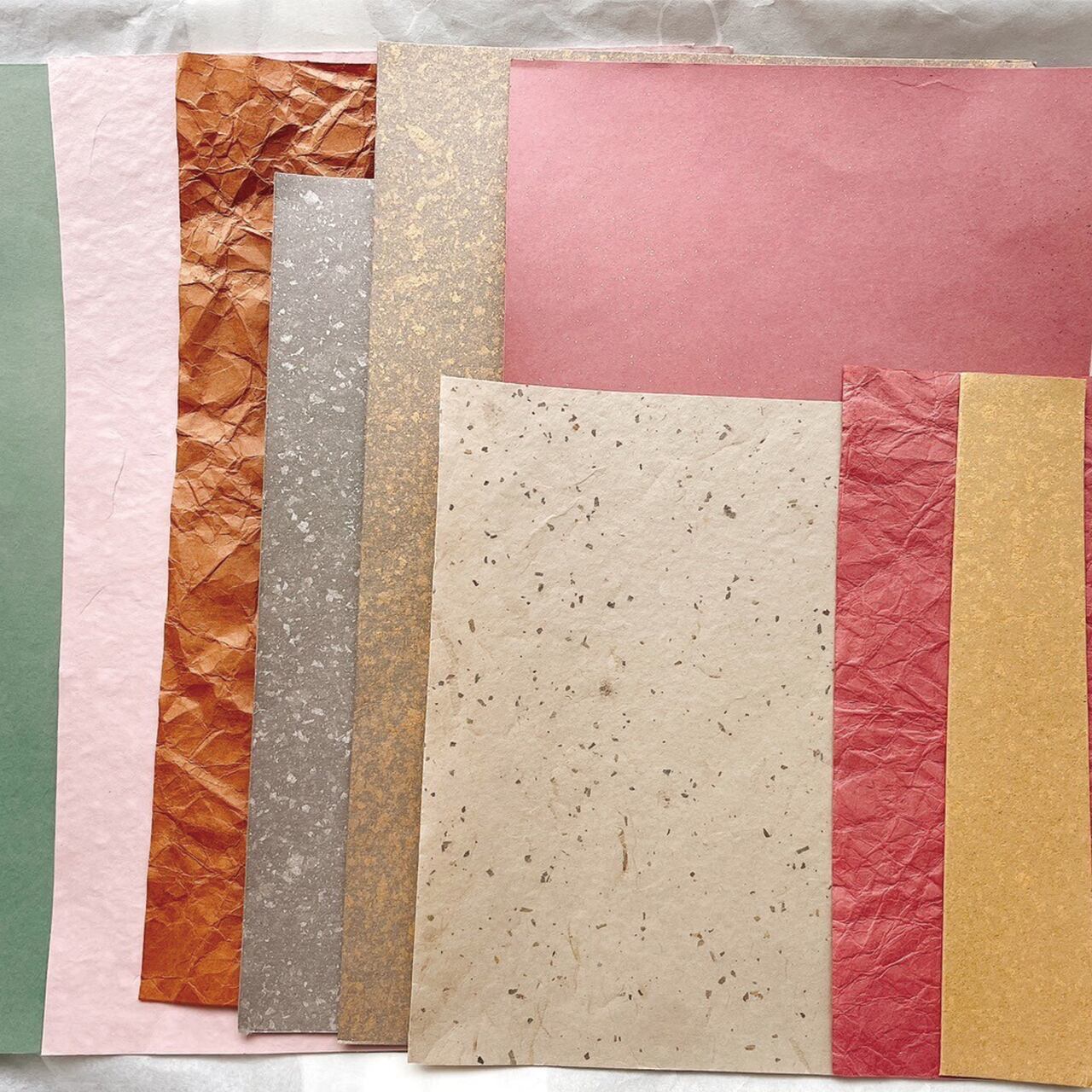 「ふすまの余韻」は、さまざまな色や質感を持つ襖紙10種類をアソートにした、紙もの好きのための特別なセットです。
